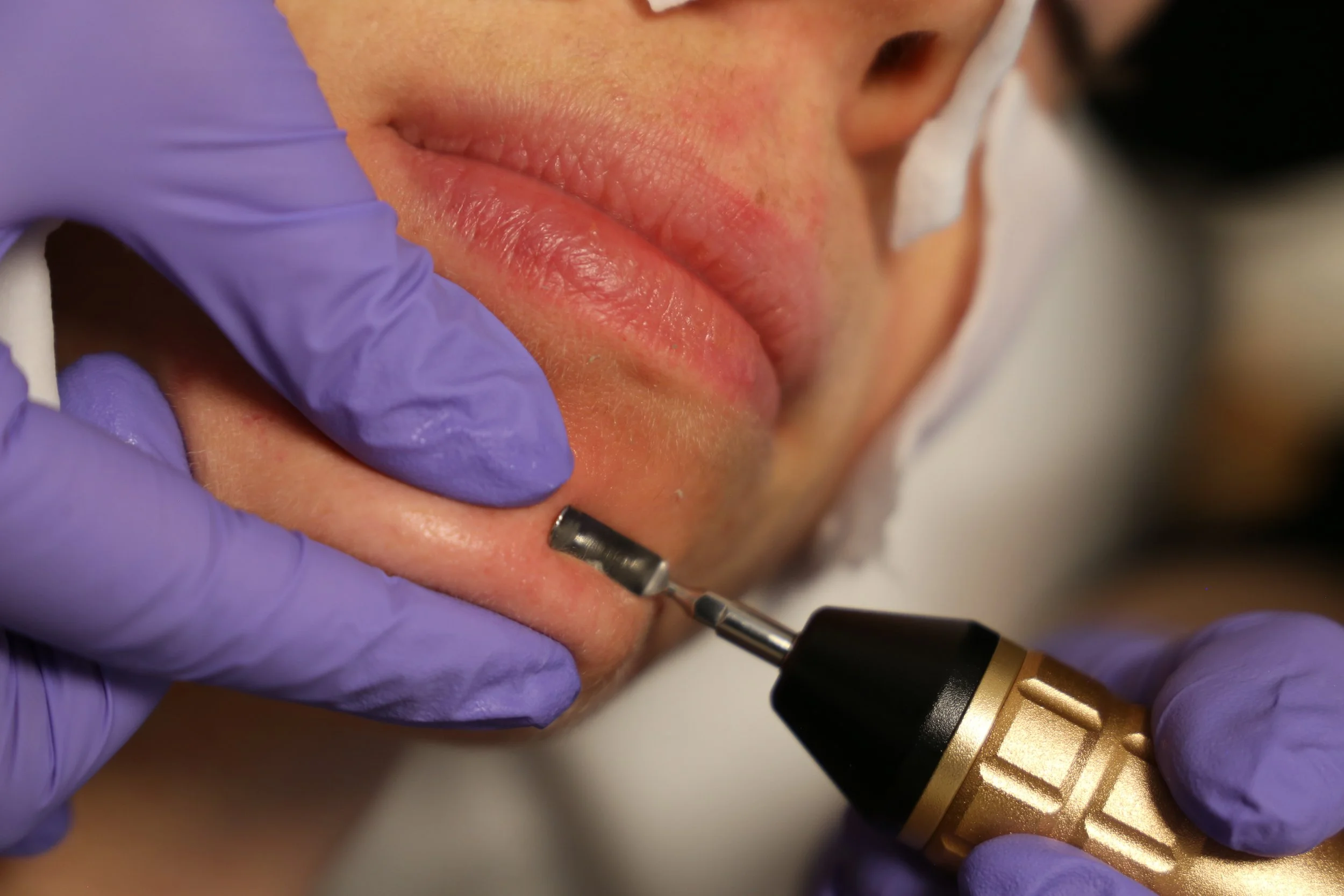 La peau est préparée avec un nettoyant doux pour éliminer le maquillage et les impuretés de surface.